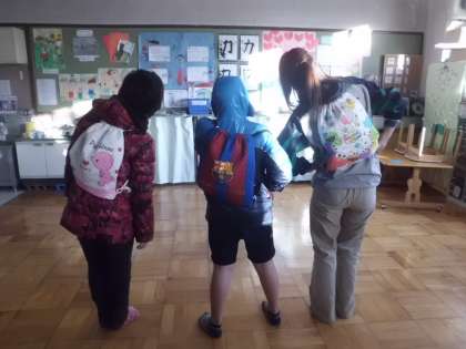 家庭科の時間に作ってきたナップサックが今日完成!大喜びでした。