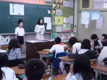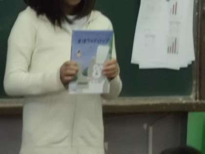 朝の会で日直がスピーチをします。テーマは「本の紹介」です。自分のお気に入りの本を持ってきて,みんなに読んだきっかけや感動したところなどを話してくれます。話しぶりに引き込まれることもしばしばです。紹介を受けた後,(いい本だな,読んでみたい!)と思います。このスピーチをきっかけにもっともっと本に親しんでくれたらなぁと思います。