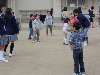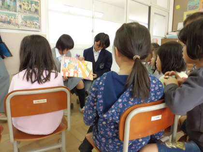 藤森中学校からお兄さんお姉さんが来て,一緒に遊んだり,読み聞かせをしてくださったりしました。面白いことをして笑わせてくれたり,わざとゲームで負けてくれたり,リクエストした本を何冊も読んでくれたり,優しいお兄さんお姉さんのことが大好きになったようです。「また,来てほしいな。」「今度はぼくたちが読み聞かせに行きたいな。」と言っている子もいました。とても楽しく思い出深い一日になったようです。