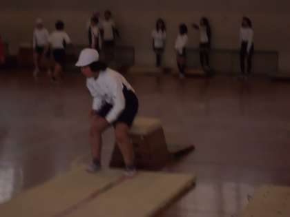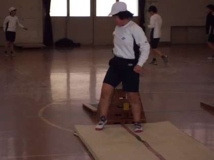 そして,今日の交流体育,お友達が楽しそうにどんどん跳んでいる様子を見て「自分もがんばろう」と刺激されてか練習を続けました。交流学級の先生が「次,4段やってみるみ」と勧めて下さり練習するとなんと4段跳べるようになりました!