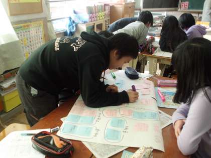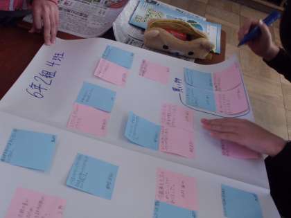 今回は,エコライフについてグループで考え,まとめる活動がありました。まずは,グループごとに,冬休みに実践してきたことを付箋に書いて交流しました。その中で,自分達が『みんなにおすすめしたいエコライフ』と『チャレンジしたいエコライフ』を選び,グループで話し合ったことを発表しました。グループ内だけでなく,他のグループのアイディアも聞くことができたので,よりエコライフを送ることの大切さを感じることができたようです。