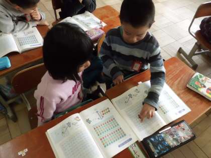 「左の数が43なので,1増えて44になります。」「54の上にあるので,10へって44です。」というように,その数になる理由をはっきりと言いながらゲームを進めていました。
