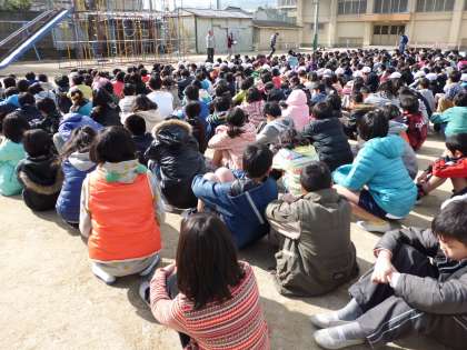 今日は,地震を想定した避難訓練を行いました。地震を知らせる放送の後,一人一人が冷静かつ真剣に,避難をすることができました。