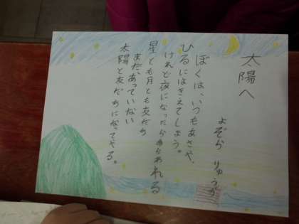 国語「野原の仲間になって」の学習で,野原のだれかになって感じたことや思ったことを詩に表しました。みんなの詩を集めてクラスの「のはらうた詩集」をつくりました。