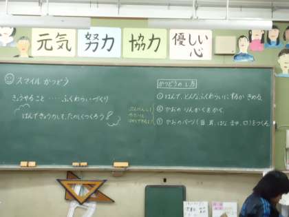 今日は新しい年になって初めてのスマイル集会でした。今回は,グループのみんなで協力して『福笑い』を作りました。どんな顔にするのか,色はどうするかなど,はじめはグループみんなで話し合いをしました。そして,役割分担をして作業開始!それぞれのグループ,とても素敵でおもしろい福笑いが完成しましたね。