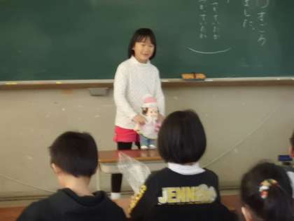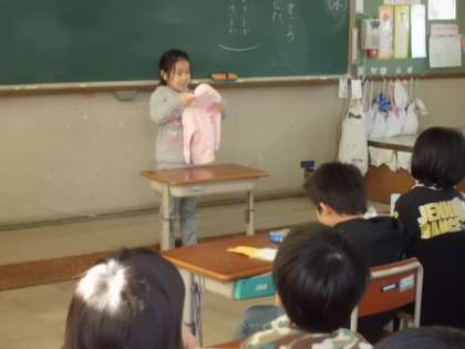 この時間には,小さい頃自分が使っていた服やくつ,おもちゃなどを持ってきて,その物にまつわるエピソードを発表しました。