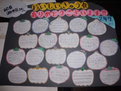 いつもおいしい給食を作ってくださる給食調理員の方へ感謝の言葉が綴られています。