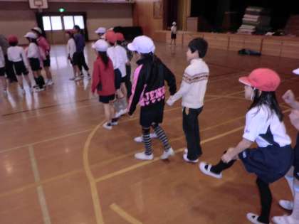 今日の,交流体育は「なわとび」でした。はじめは縄を跳ぶだけの練習をしました。「5回頑張ってみよう!」「10回頑張ってみよう!」「15回でおしまい!」と少しずつ目標を上げていくと「どんどん」跳べるようになりました。