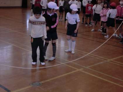 最後は,みんなで「大縄跳び」お友達が手をつないで一緒に跳んでくれます。