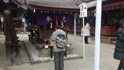 神社内の干支神社で,真剣なお願いです。