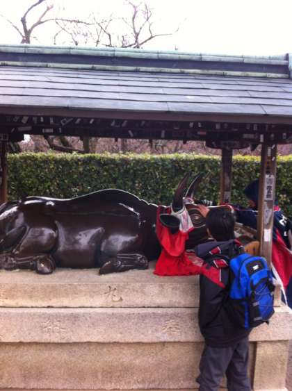 頭をなでなで…。お家の人を思ってなでると教えてもらいました。