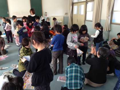 出来上がった紙でっぽうを力いっぱい振りかぶって「パンッ!!」と鉄砲のような音が鳴り響くと,子どもたちは大興奮でした。
