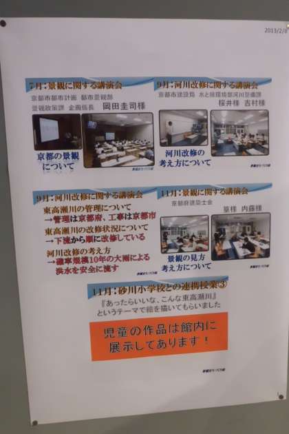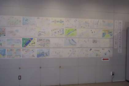 深草総合庁舎1階コミュニティホールに展示されている「あったらいいな,こんな東高瀬川」の絵を見て来ました。4年生の子どもたちが未来の東高瀬川を想像して描いた絵です。74枚の絵が丁寧に展示されてるのを見て大変うれしく思いました。