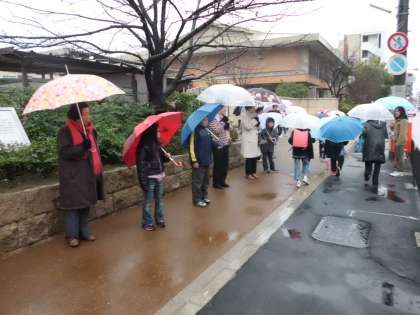 今日は,女性会の方々と一緒にあいさつ運動を行いました。