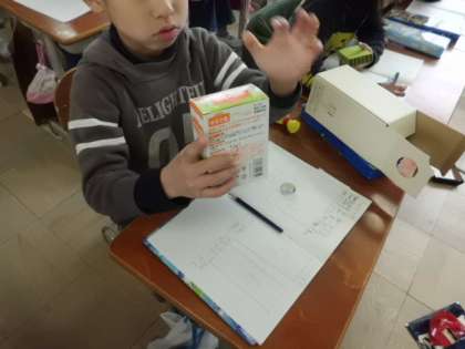 自分の持ってきた箱を調べた後,どの箱にも同じことが言えるのか友達と交換して確かめました。