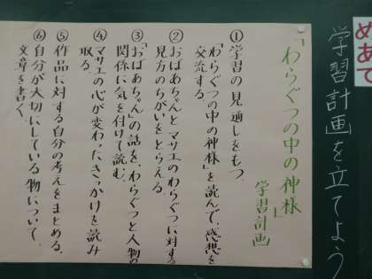 国語では,「わらぐつの中の神様」の学習をしています。今日は,これからの学習計画を立て,学習の見通しを立てました。