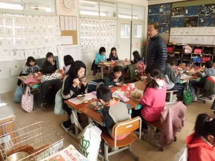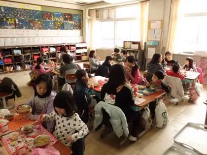 普段は,集団登校や掃除でお世話になっている6年生のお兄さんやお姉さんと一緒に,給食を楽しく食べていました。