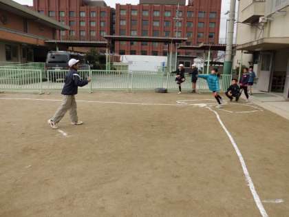 今日が最後のハンドベースボールでした。初めは苦手意識のあった子も,周りの友達の助言を受けて,回数を増すごとに,だんだんと上達してきました。次の体育からは,鉄棒運動に挑戦します。