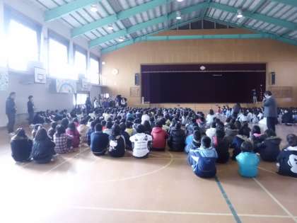 1年間子どもたちの安全を見守ってくださった交通安全推進委員会さん・砂川交番のおまわりさん・スクールガードリーダーさん・学校安全ボランティアさんへの感謝の気持ちを込めて,感謝式を行いました。
