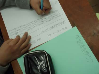 「主人公と出会ったきっかけを『始まり』の部分に書こう」「結末で事件の犯人が分かる物語にしたら面白いかな。」などと,一生懸命に考えていました。