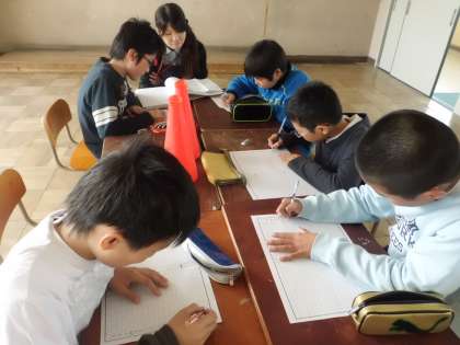 計画委員会で,1年生を迎える会にむけての計画を立てています。司会進行の流れを考えたり,始めの言葉・終わりの言葉を考えたりしています。1年生に喜んでもらえるような会になるよう,一生懸命に取り組んでいます。