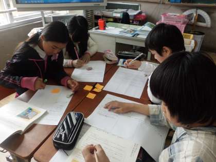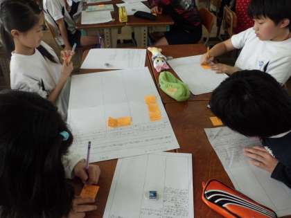 国語で「カレーライス」という物語の学習をしています。みんなと同じ小学6年生の男の子が主人公であることもあり,主人公の言動に「わかるわかる,その気持ち!」と,子どもたちは共感しながら読み進めています。今日は,グループで登場人物の言動を追い,「ぼく(主人公)」の心情を想像したり,話し合ったりしました。