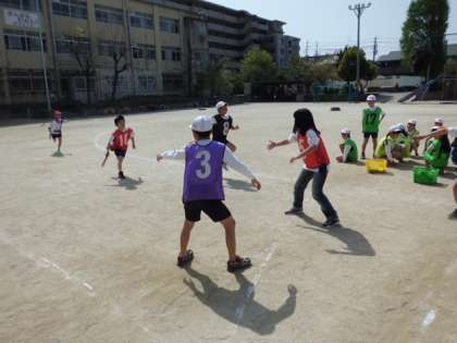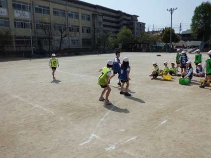 4年生の体育ではリレーをしています。