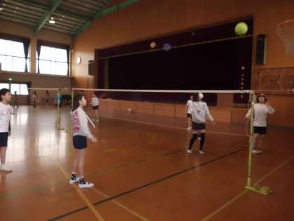 6年1組と一緒に体育でソフトバレーをしました。少しずつルールやレシーブの方法がわかってきています。自分のチームに得点が入ると大喜びの2人でした。