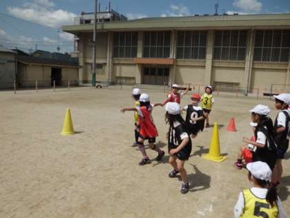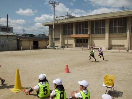 6チームに分かれて,バトンパスの練習や走る順番などを工夫しながら,毎回がんばっています。