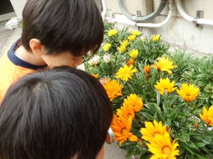 今日は,虫めがねを使って,生き物や花を観察しました。