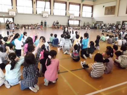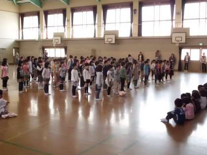 2年生はトップバッターで,「ジェットコースター」の歌を1年生を迎える会バージョンで歌いました。