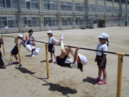 今日は,鉄棒の正しい握り方を学んだ後,「ふとんほし」や「おさるさん」などの技に挑戦しました。