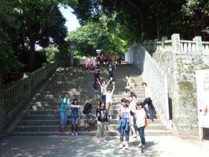 大人も子どもも,みんな登り切ることができました!グループ写真を撮り,これからお土産の買い物を楽しみます。
