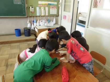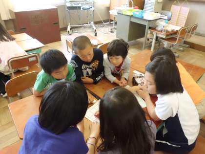 自己紹介のあとは,みんなでビンゴゲームをしました。リーチになると1年生が立ちます。そしてビンゴになると「やったー!」の声が教室中に響きわたりました。