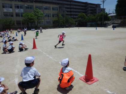 とても一生懸命走って,一生懸命応援している1年生でした。