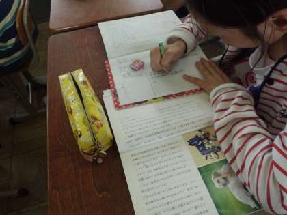 国語で「生き物はつながりの中に」の学習をしています。今日は,筆者の意図をとらえながら,文章を読み進めました。