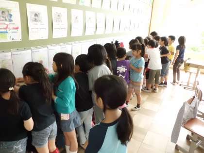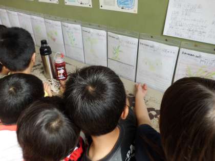 野菜の様子を書いたカードを見て,誰が分かりやすい文を書いているのかを探してみました。