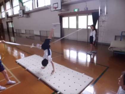 マット運動の締めくくりとして,今日は側方倒立回転の練習をがんばりました。