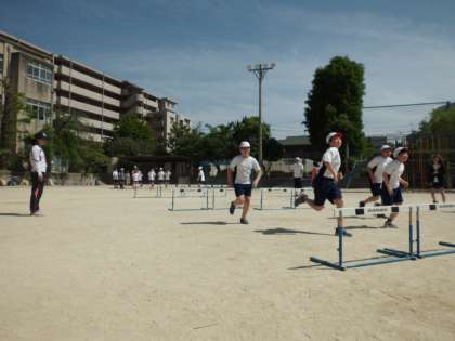 体育でハードル走をしました。歩数を合わせて走るのに苦戦していましたが,何回も何回も繰り返し走って頑張りました。