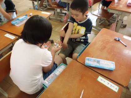 子どもたちはお互いに問題を出し合いながら,理解を深めていました。