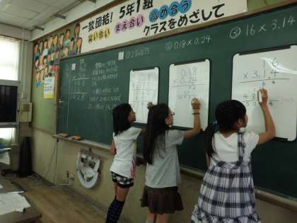 算数では,小数×小数の学習をしています。今日は,筆算の仕方を学びました。