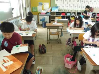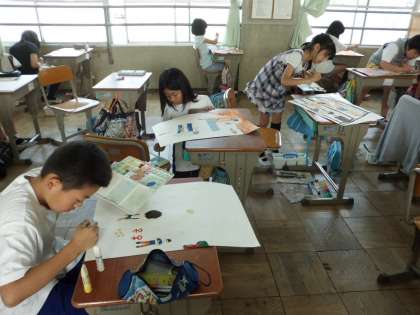 5・6年生で実施した体力テストを題材にして,絵を描きました。体の動きや表情をよく見て,丁寧に取り組んでいます。