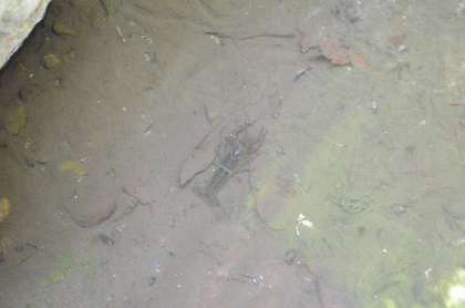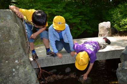お弁当を早く食べ終わった子たちは,公園内にある小川を探索していました。