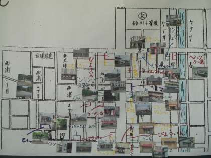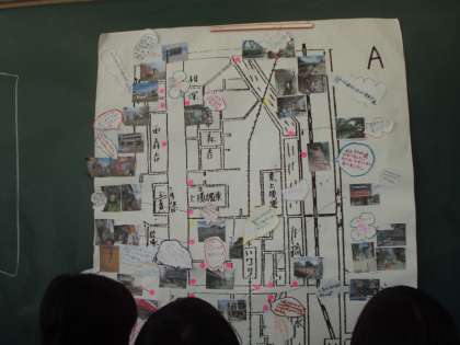 グループごとに町たんけんをし,大きな白地図にまとめる学習が終わりました。