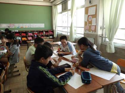 6−2と一緒に調理実習をすることになりました。同じグループのお友だちと一緒に役割分担や目標などを決めました。美味しい野菜炒め,期待しています♪