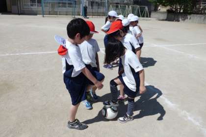 体育の「ボールけりゲーム」では,積極的にボールを追いかける姿が見られるようになってきました。作戦タイムの時間も,チームでまとまってパスの仕方や,誰をマークするかなど,濃い話し合いができるようになってきました。