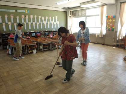 1年生が気持ちよく学習ができるよう,毎日教室掃除に行っています。教室だけではなく,手洗い場やろうか,トイレ掃除も6年生が担当しています。