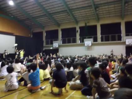 今年は,影絵劇団かしの樹の方々による影絵『100万回生きたねこ』『セロ弾きのゴーシュ』を鑑賞しました。鑑賞の合間には,体験も交えた影絵教室もしていただき,会場は大盛り上がりでした。かしの樹の皆さん,ありがとうございました。
