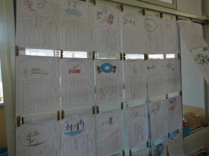 きつつきの商売のきつつきのように,動物がこんなお店を開いたらおもしろいということを考えました。イルカやさる,ウサギが特徴をいかしたお店をたくさん考えることができました。お題はもちろん,その動物がうれしいものです。