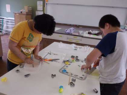 わかばクイズの景品を作っています。とても楽しそうに作っている2人です♪さてどんな景品でしょうか?